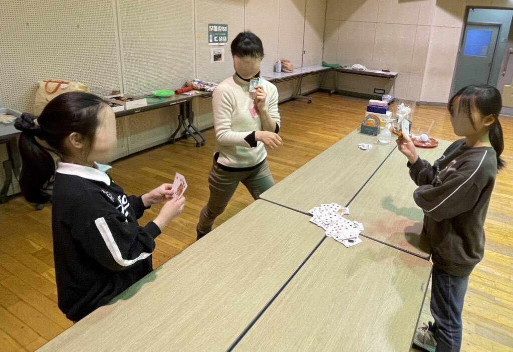 増え鬼をしたら即終了。4人でババ抜き、ジジ抜き、大縄跳びをやりました。