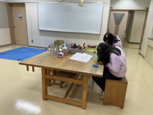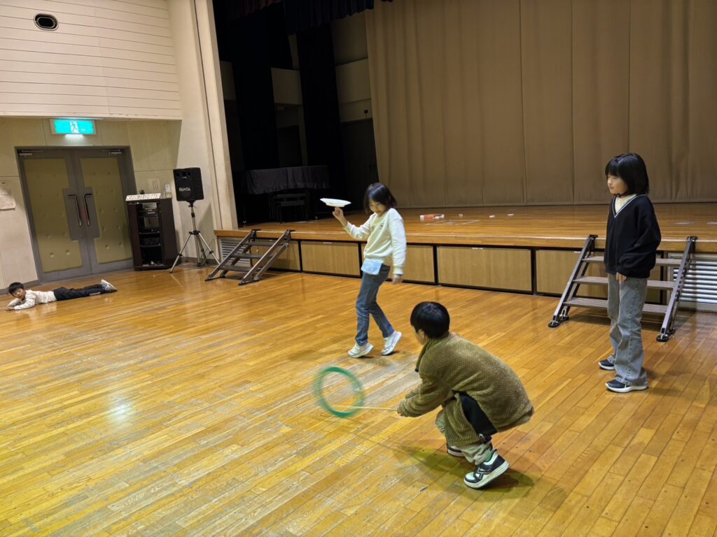 ひとりは折り紙先生なので、スタッフにまた繋がった鶴の作り方を詳しく教えてくれました。大人が夢中になって作っているうちにどんどん子ども達はやって来て、こまやなわとび、紐遊び、追いかけっこなど始めました!名簿を書く順番待ちでは大きな声で歌を歌う子がいて、周りのみんなも知ってるかのようにニコニコ。コマーシャルか何かなのかなぁと思い、なんの歌と聞くと、オリジナルの歌〜!との事でした!来た時からすでに楽しそうでした。
