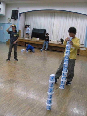 今日はスタッフが持ち込んだヨーグルトカップでの遊びが人気だった。自分たちの背より高くつめるかな?中に重しを入れたり工夫して積み上げていた。カップを並べてホーリング、頭に載せて落とさないように歩いたり⋯いろいろいろあそべるね〜
