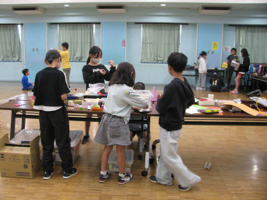 鬼ごっこはいつの間にか始まって、工作途中の人も走り出す。4時半のよいこチャイムの後に残った人たちは「だるまさんがころんだ!」でお迎えがくるまで遊んでいました。