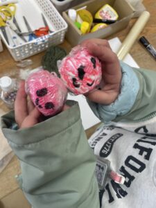 今回コマやけん玉コーナー作ると何人かが挑戦。5年生になって初めてなのか糸の巻き方、回し方がままならない。しかし気長に挑戦し、回った!!時の嬉しい表情。