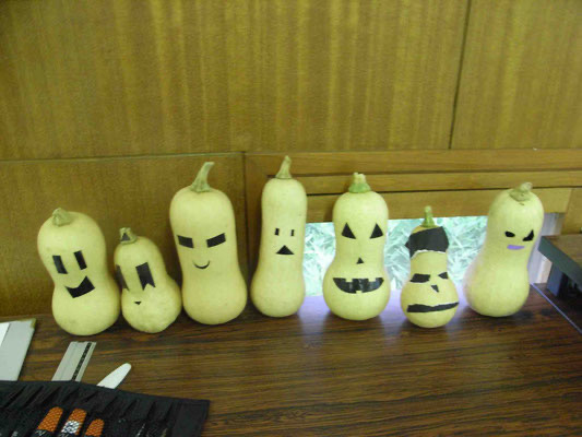 ハロウィンかぼちゃも顔をつくりました。はさみが使えない幼児は紙を自由にちぎって貼りました・・・
