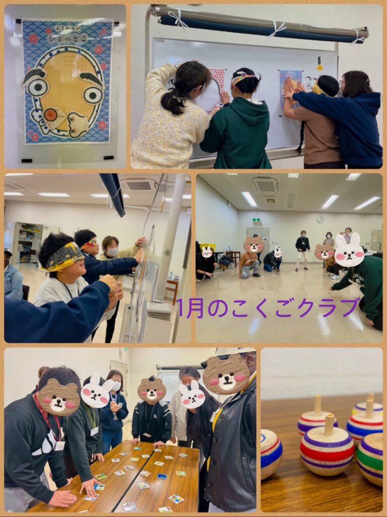 こくごクラブ(活動報告.2026.1月) 2026年2月13日 最終更新日時 : 2026年2月13日 いるまこども食堂ネットワーク 1月は3回開催:11日、18日、25日延べ人数(こども14名、おとな3人、スタッフ20名)新年最初のこくごクラブがスタートしました。1月は、週替わりで日本の伝統的な遊びを楽しみました。こま遊びでは、いろいろな種類のこまに挑戦して、思い思いに回して遊びました。福笑いでは、素晴らしい(!?)作品ができ、大盛り上がりでした。笑顔いっぱいのスタートとなり、今年も幸先の良い一年になりそうです。2月開催:1日、15日、22日の予定です。(場所13時〜14時30分西武分館) Follow me!