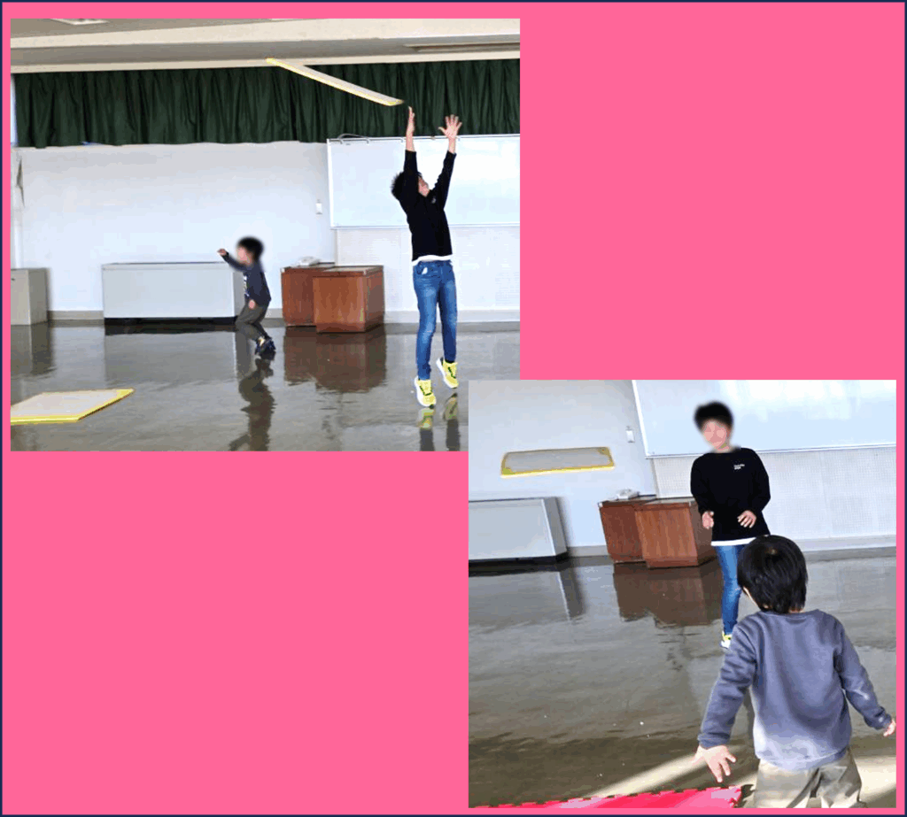 その他、スイカボール、大きな平たい発泡スチロールでフリスビー遊び、鬼ごっこなどで遊び、ビンゴゲームを楽しみました!