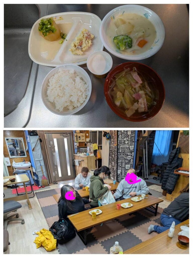 メニューは、クリームシチュー.さつま芋サラダ.大根の煮物.野菜スープ.ヨーグルトムース