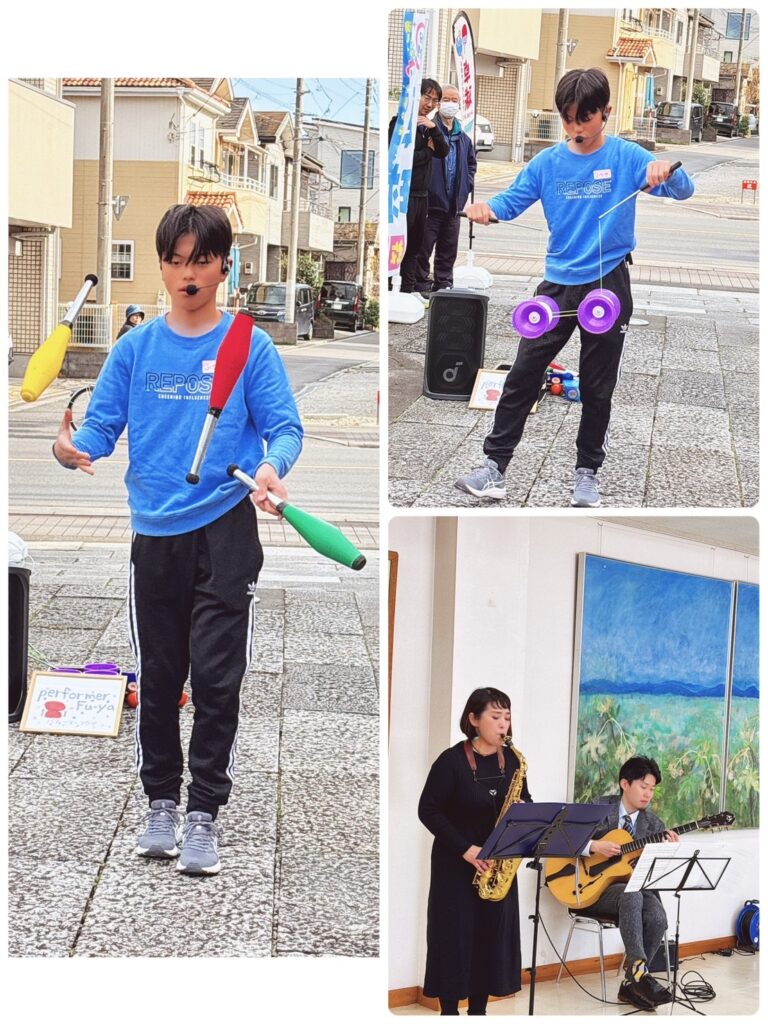 地元中学生パフォーマーのジャグリングステージや、ギター&サックスの演奏ステージも、皆さんに楽しんでいただきました!