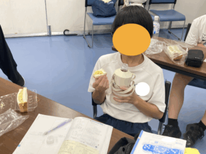 ご飯は、寄付して頂いた豚肉と、カルピスで、カレーとカルピス寒天!