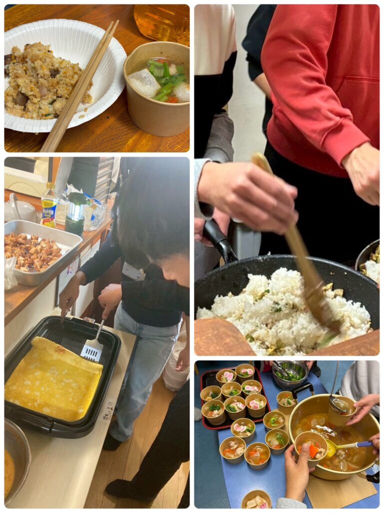 お正月なので、新年最初のごはんではお雑煮を食べました。家では作らないお家もあり、それぞれのお正月を話しながら作りました。