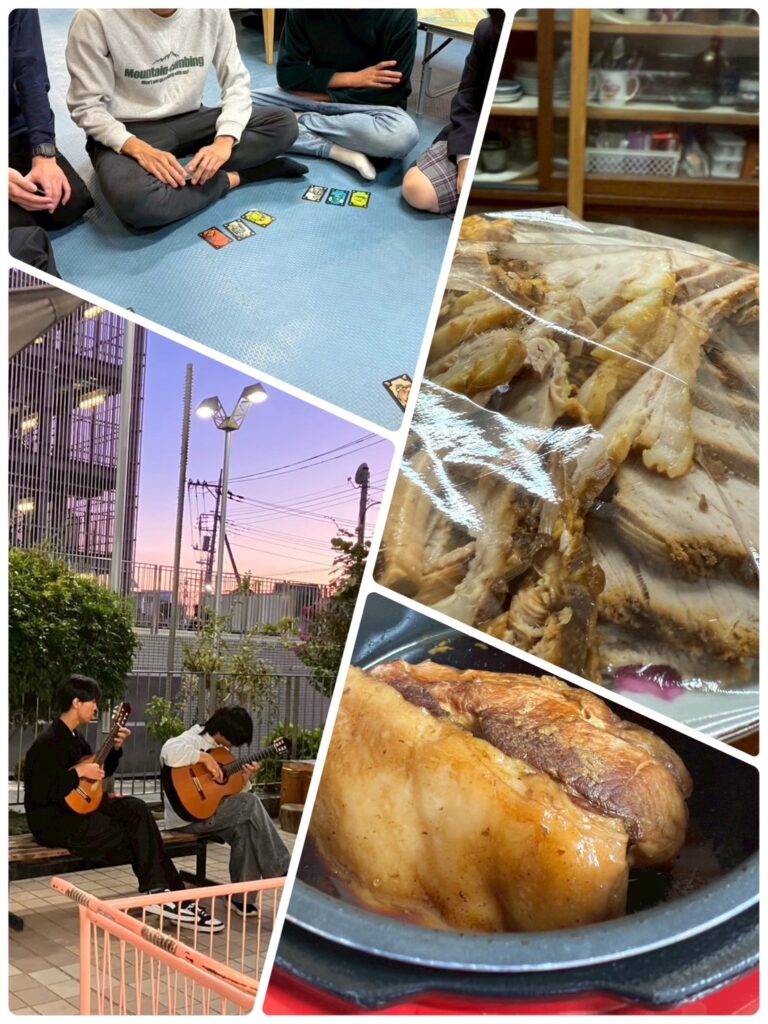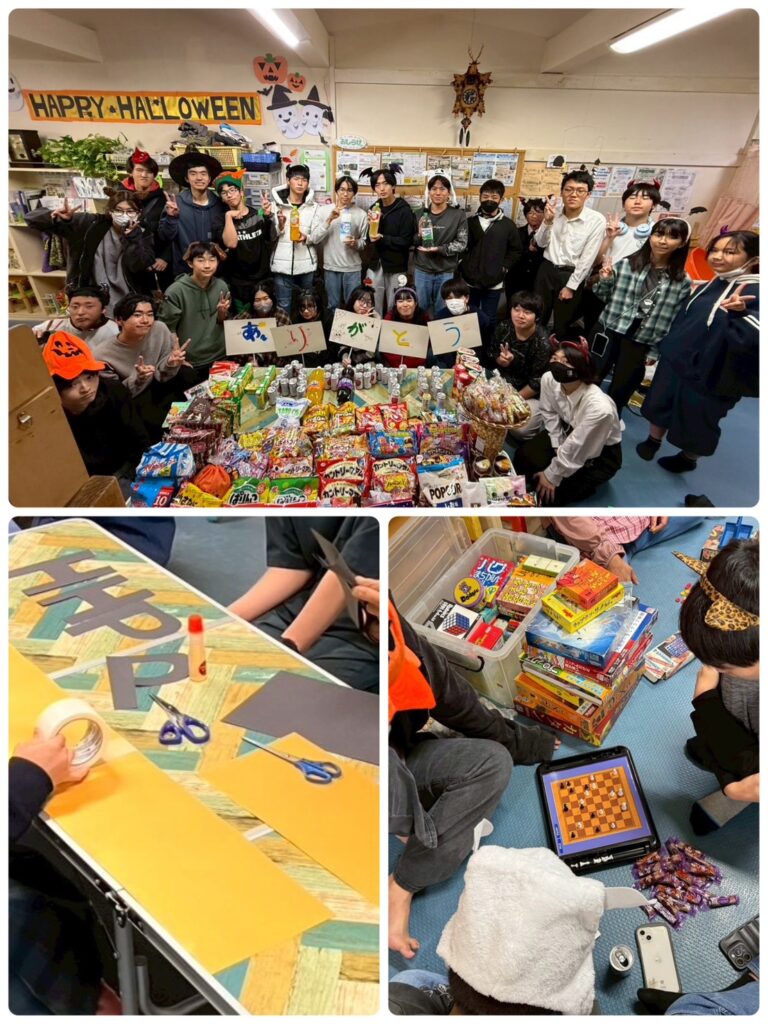当日はクリームシチューの他に、ハロウィンにちなんだカボチャシチューも登場!いつもよりたくさんの若者達が集まり、プチ変身を楽しみお菓子をお腹いっぱい食べながら賑やかに過ごしました。